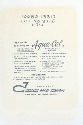 1967 Decal 2 Pack - "Aqua-Cal" Transfer