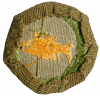 These narrow crimped merit badges were made using a light weight cloth with a unique weave. This cloth was used by one of the two suppliers of merit badges during WWII. Many collectors describe the weave as having a basket weave look and some describe the color as olive. The weave pattern is the welf thread passes over two warp threads then under two warp threads.