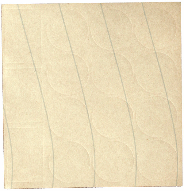 39mm square, beige fine twill cloth, gauze reinforced starched back.