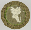 Type 4 continuous loop border narrow tans were made using a light weight loose weave base cloth. The easiest way to distinguish these from the other continuous loop narrow tans is to perform the light test. Hold the badge 3-4 ft away from a 100w light source and you will see light pass through the weave.