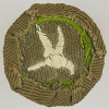 Type 4 continuous loop border narrow tans were made using a light weight loose weave base cloth. The easiest way to distinguish these from the other continuous loop narrow tans is to perform the light test. Hold the badge 3-4 ft away from a 100w light source and you will see light pass through the weave.