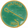 CAID1-ML-pp, Gold rolled edge, green medium left twill cloth, gold shepherd's staff, plain plastic back.