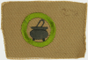 The cloth of this badge is standard heavy uniform broad cloth. Cooking Pot is Brown thread.