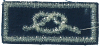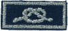 K-B05o-PB, blue fine twill back cloth, Swiss embroidery, silver Mylar knot, silver Mylar border, plain plastic back.
