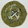 These narrow crimped merit badges were made using a light weight cloth with a unique weave. This cloth was used by one of the two suppliers of merit badges during WWII. Many collectors describe the weave as having a basket weave look and some describe the color as olive. The weave pattern is the welf thread passes over two warp threads then under two warp threads.