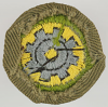 Type 4 continuous loop border narrow tans were made using a light weight loose weave base cloth. The easiest way to distinguish these from the other continuous loop narrow tans is to perform the light test. Hold the badge 3-4 ft away from a 100w light source and you will see light pass through the weave.