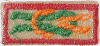 K-B10p-PB, beige medium twill back cloth, Swiss embroidery, green and orange knot, light red border, plain plastic back.