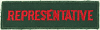 , green background, red letters, gauze reincorced stached back