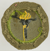 Type 4 continuous loop border narrow tans were made using a light weight loose weave base cloth. The easiest way to distinguish these from the other continuous loop narrow tans is to perform the light test. Hold the badge 3-4 ft away from a 100w light source and you will see light pass through the weave.