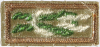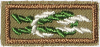 K-E01c-PB, light khaki fine left twill cloth Swiss embroidery, green and white knot, medium brown border, plain plastic back.