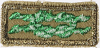 K-E02f-CB, light khaki fine left twill cloth, Swiss embroidery, green knot, khaki border, cloth back.