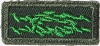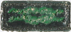 K-E02o-PB, forest green medium left twill, Swiss embroidery, green knot, forest green border, plain plastic back.