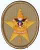 ST18-C-T-TB-SSP, cotton embroidery, tan twill back cloth, needle eye knot, vertically stitched star, horizontally stitched scroll, pelon reinforced molded plastic back with scout stuff logo
