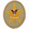 ST19-C-T-FL-MP1910-type2, cotton embroidery, tan medium left twill cloth, needle eye knot, vertically stitched star, vertically stitched scroll, gauze reinforced molded plastic back with Since 1910 type 2 logo