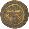 Type 4 continuous loop border narrow tans were made using a light weight loose weave base cloth. The easiest way to distinguish these from the other continuous loop narrow tans is to perform the light test. Hold the badge 3-4 ft away from a 100w light source and you will see light pass through the weave.